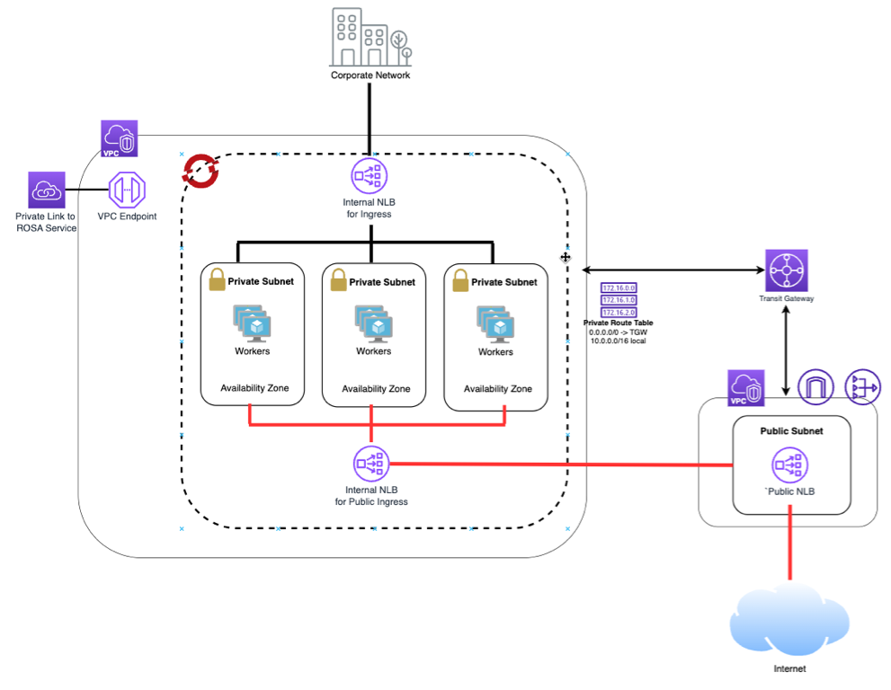Red Hat strongly recommends creating a private ROSA cluster with no inbound Internet connectivity, isolating both the cluster API and hosted applications from external access. This configuration is a key part of a multi-layered security strategy to protect clusters and workloads from external threats.